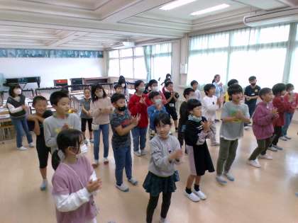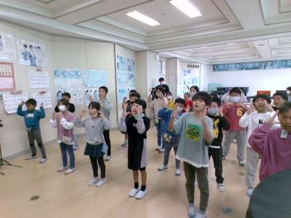 3年生では感謝ふれあい集会にむけ、「ありがとうの花」の歌と手話ダンスを練習しています。地域の方に『ありがとう』の思いを伝えることや、楽しんでもらうことを目当てとし、練習に励んでいます。