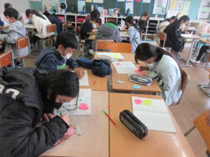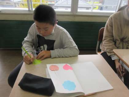 道徳の時間に、互いのよさを見つけ合う活動をしました。 進んで楽しく活動していました。