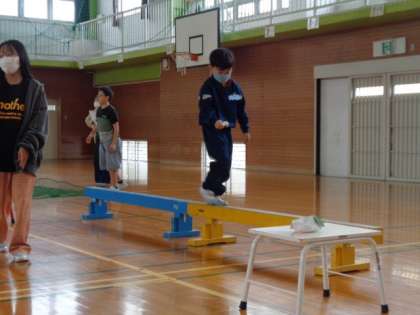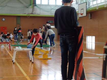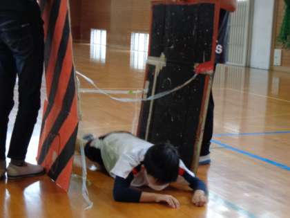 ハロウィン集会 黄団 公開日 2022/11/22 更新日 2022/11/22 児童会行事 今日は情報集会委員会主催のハロウィン集会でした。2チームに分かれて、網くぐりや平均台などの様々な障害物レースを楽しみました。