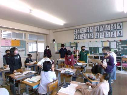 【5年生】道徳 公開日 2022/11/22 更新日 2022/11/22 5年生 「星が光った」という資料を読みました。私達人間は、地球が生まれて46億年の中で、ほんのわずかな一瞬を生きています。豊かな「自然」を大切にしていかなければいけないですね。 感想の交流では、全員がきちんと意見を言えていました。学習発表会から約一ヶ月。全体に通る声を意識している子供が多い印象です。あとを大事にできています。