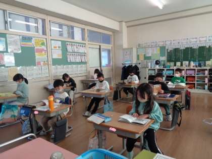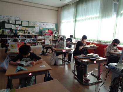 図書室で本の借り換えをした後は、教室でしばらく読書タイムをとります。どの子も集中して本を読めるようになってきました。
