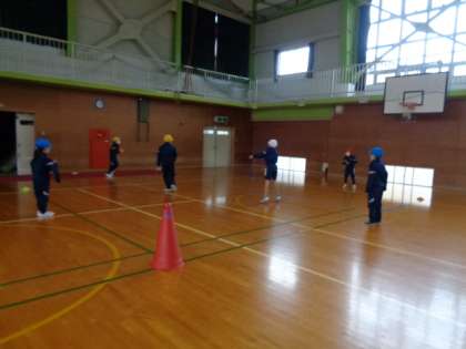 先週からドッジボールの学習をしています。まずは「スキルアップタイム」で、チームの友達とパス回しや狙ったところに投げる練習をしています。その後、「お試しゲーム」で試合を行います。一人一人の投げる力の向上と、勝ち負けにこだわることなく友達と仲良く運動を楽しむことを目当てに頑張っています。