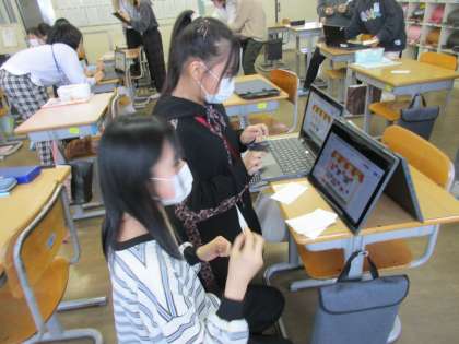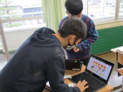 外国語科の学習。外国語で丁寧に注文したり、値段の受け答えをしたりしました。一人一人の思いの詰まったお店に買い物に行き、楽しそうな表情が見られていました。