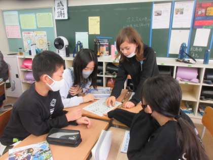 【6年生】外国語 すごろくゲーム 公開日 2022/12/05 更新日 2022/12/05 6年生 外国語の時間にすごろくゲームをして楽しみました。 英語で単語を言いながら友達と教え合って、大盛り上がりしました。