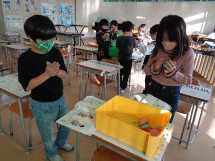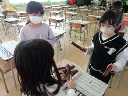 今日は音楽室で様々な打楽器を演奏して、自分の好きな音を見つけました。子供たちはとても楽しそうでした。