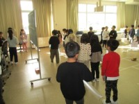 持ち寄った材料で秋のおもちゃを作りました。子供たちはお互いの作ったおもちゃで楽しく遊びました。