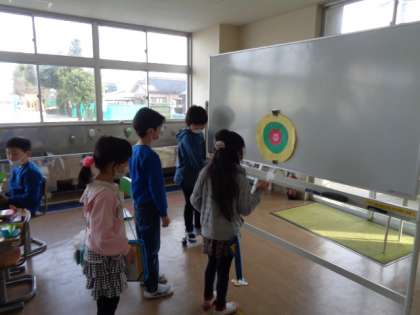 1限目は生活科で、自分たちがつくったおもちゃを1年生に遊んでもらいました。遊び方を1年生に教える頼もしい姿がたくさん見られました。