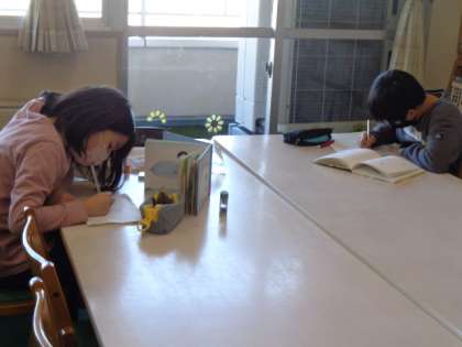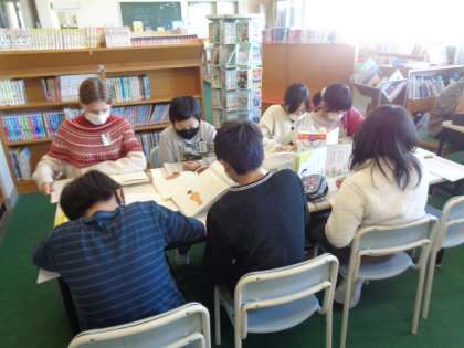 国語の学習で、お気に入りの詩を見つけに図書室に行きました。一人一冊本を選んで気に入った詩をノートに書きました。