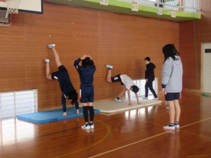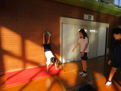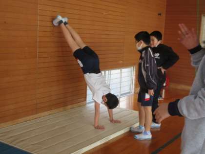 壁倒立ができたら、次は倒立前転です。 目線に気を付けて、みんな上手にできました。