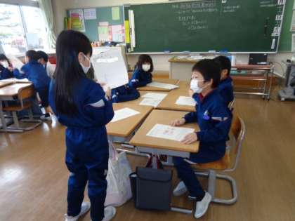 【2年生】わたしたんけん 公開日 2023/01/16 更新日 2023/01/16 2年生 自分の「がんばったカード」をグループで聴き合いました。その後、友達のすてきを見つけ合う「すてきカード」を作りました。自分のよさはなかなか自分では気付かないものです。友達のよいところをどの子も真剣に書いていました。贈り合うのが楽しみです。