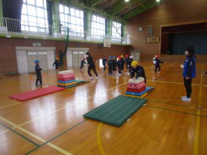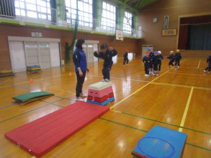 ポイントを教えてもらい、手の位置や踏み込みの仕方を練習しました。これからも練習を重ねて、跳べる段を増やしていけたらよいですね。