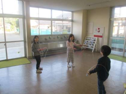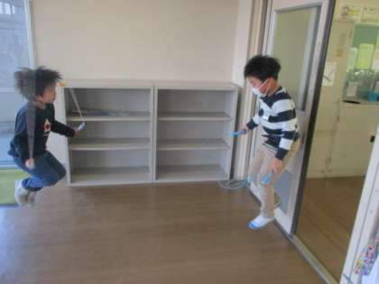 体育では縄跳びをしました。二重跳びに苦戦しており、子供たち同士で二重跳びのコツを教え合っていました。