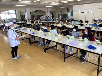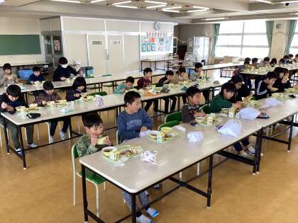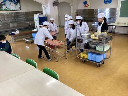 1/26(木)、初めてランチルームで給食を食べました。慣れない場所でも、いつも通り給食準備をしたり、配膳をしたりすることができていました。子供たちは、「早く4年生になって、上学年への仲間入りをしたいな」と進級を楽しみにしている様子でした。