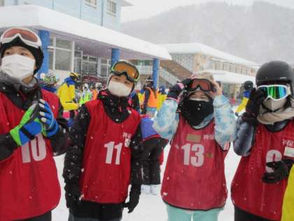 準備体操をしてから滑る練習をしました。