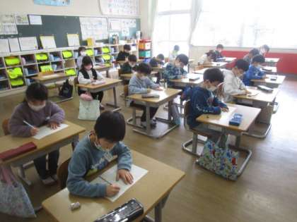 【1年生】とめ・はね・はらい 公開日 2023/01/30 更新日 2023/01/30 1年生 書写の学習では「とめ・はね・はらい」に気を付けて文字を書きました。姿勢を正して、集中して書いている姿がすてきでした。