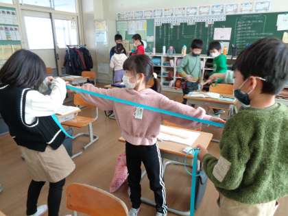 「あた」「つか」「ひろ」という昔の日本で使われていた長さが、どのくらいなのかみんなで調べました。