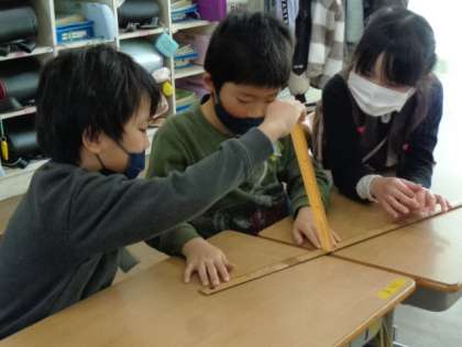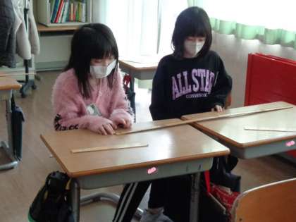 今日は1mものさしの読み方を学習しました。初めは時間がかかりましたが、どんどんすばやく読めるようになりました。ペアを替えながら楽しく学習しました。
