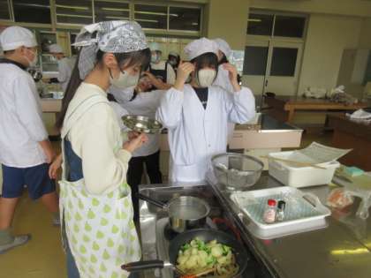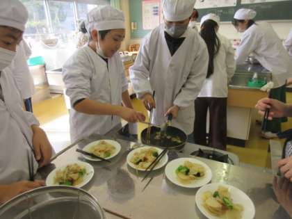 切る、ゆでる、炒めるなど、たくさんの工程を素早く行っています。
