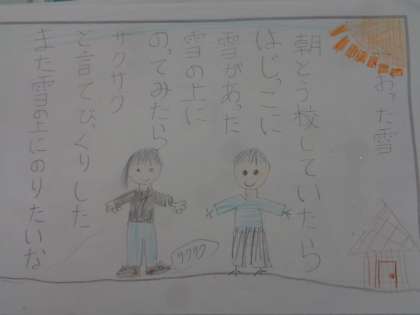 【2年生】詩を作ろう 公開日 2023/02/09 更新日 2023/02/09 2年生 子供たちが初めて詩を創りました。初めは「難しそう」と言っていましたが、詩の自由さや面白さに気付き楽しく書くことができました。友達とお互いの詩を読み合いました。