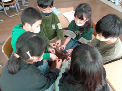 音楽の時間に「ずいずいずっころばし」で遊びました。何度やっても大盛り上がりです。ぜひ家でもやってみてください。