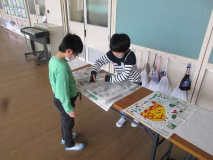 【1年生】カラフルアニマル 公開日 2023/02/09 更新日 2023/02/09 1年生 版画の刷りの工程も2回目となり、子供たちも慣れてきた様子でした。友達が刷っているところを手伝いながら、「きれいにできたよ」と嬉しそうに話していました。