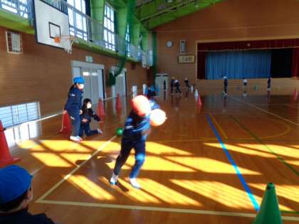 1組の学級閉鎖が明け、久々の体育です。子供たちは楽しそうにボール蹴りゲームをしていました。
