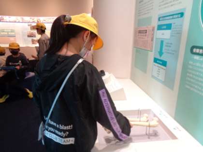 自由時間には、骨のレプリカにふれて健康な人とイタイイタイ病になった人の骨の重さを比べることができました。