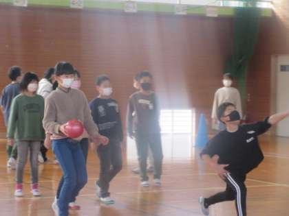 今日は、5年生と交流を楽しみました。 ドッジボールでは互角の対戦となりました。