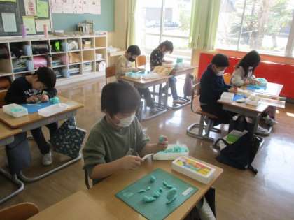 【2年生】おもいでをかたちに 公開日 2023/03/14 更新日 2023/03/14 2年生 図工の時間は、今までで心に残ったことを粘土で形に残しました。それぞれが心に残ったエピソードを話しながら楽しく作ることができました。