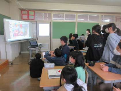 思い出ムービー上映会 公開日 2023/03/16 更新日 2023/03/16 6年生 4年生が作成してくれた、思い出の写真ムービーを観賞しました。 懐かしい思い出に浸り、楽しい時間となりました。 その後、1年間使った机や椅子、教室を掃除しました。 明日はいよいよ卒業式です。今日は笑顔で下校しました。