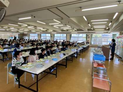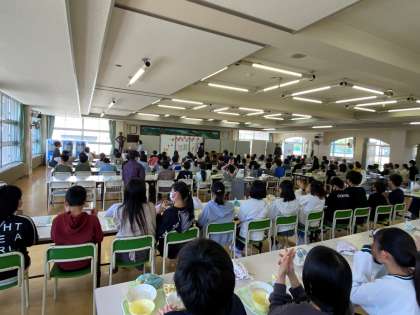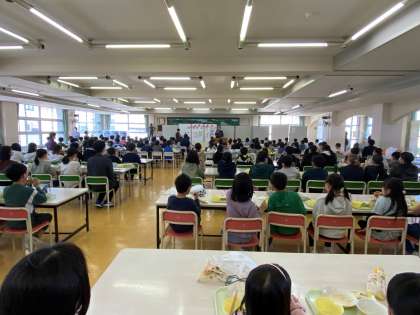 4月13日(木) 着任した先生の紹介 公開日 2023/04/13 更新日 2023/04/13 お知らせ・お願い 給食の時間に、新しく神保小学校に着任された先生方の紹介がありました。 ランチルームで行いましたが、3年生から6年生の子供たちはしっかりと目と心をつないで先生のお話を聞いていました。1、2年生は、各教室でオンラインで参加しました。