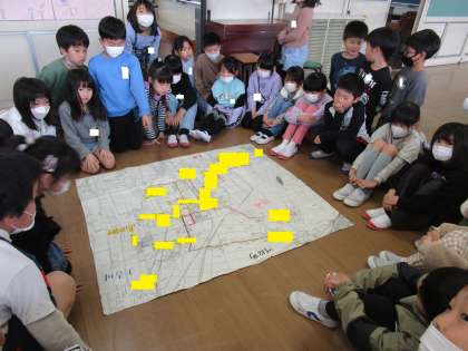 【3年生】社会科の学習をがんばっています 公開日 2023/04/18 更新日 2023/04/18 3年生 今日は、2回目の社会科の学習を行いました。4方位、8方位を知り、校区地図を見ながら自分の家が学校からどの方位にあるか真剣に確認する子供たちです。