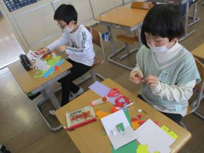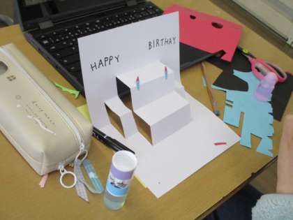 【4年生】カードで伝えよう 公開日 2023/04/26 更新日 2023/04/26 4年生 図画工作科では、自分の伝えたい気持ちを伝えるために、飛び出すカード作りをしています。今日は、様々な切り方を試しました。切る細さや大きさによって、飛び出し方が違うことが分かりました。できたカードから、さらに発展させ、新しい飛び出し方を見つけている様子も見られました。どんなカードができるか楽しみですね。