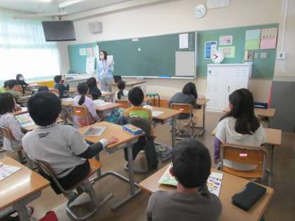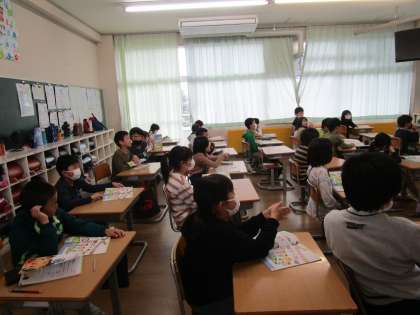 子供たちがとても楽しみにしている外国語活動がありました。残念ながら今日は、ALTの先生が欠席でしたが、担当の先生と一緒に元気に声を出す3年生でした。