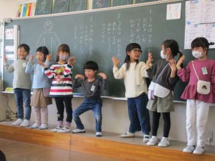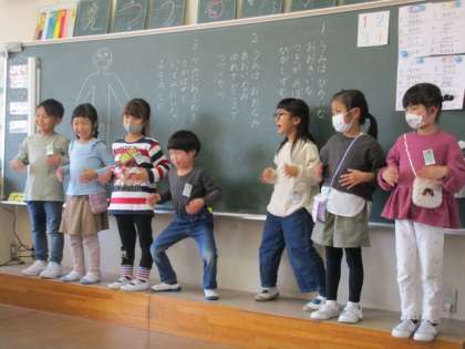 音楽の時間に、みんなで楽しく踊りました。