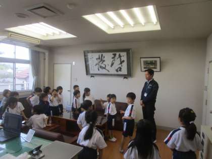 【1年生】学校探検 公開日 2023/05/09 更新日 2023/05/09 1年生 生活科では学校探検をしています。 今日は校長室を探検しました。 校長先生の話を聞いたり、初めて見る物に驚いたりしていました。 もっと神保小学校のことを知ってすきになってほしいと思います。