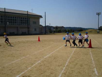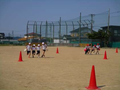 3・4年生は、台風の目の練習に一生懸命取り組んでいます。今日は、初めて合同で練習をしました。並ぶ様子や待つ態度など、きびきびやろうという思いが伝わってきました。4年生は、3年生に「今、抜けて!」「大丈夫?」と上学年らしく声をかけている姿が見られました。3年生は、4年生と一緒に走り抜けようと協力しようという意識が伝わってきました。中学年の協力パワーでグラウンドに台風を起こしましょう!
