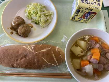5月12日(金) 今日の給食 公開日 2023/05/12 更新日 2023/05/12 お知らせ・お願い 今日は、最後のサミット給食です。 今日明日と開催されるG7富山・金沢教育大臣会合にあわせ、参加する7カ国それぞれの国の献立が登場します。 今日は、ドイツの献立です。 ライ麦パン、フリカデレ(ドイツ風一口ハンバーグ)ザワークラウト(キャベツの漬け物)アイントプフ(具だくさんスープ)牛乳です。 今日もおいしくいただきました!