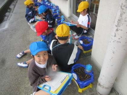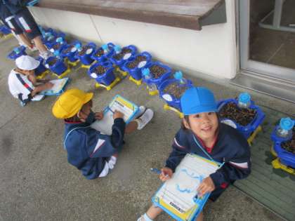 【1年生】あさがおはどうなったかな 公開日 2023/05/15 更新日 2023/05/15 1年生 今日は、アサガオの芽が出ている友達がおり、朝から大盛り上がりでした。 さて、自分のアサガオはどうなっているか、観察しています。