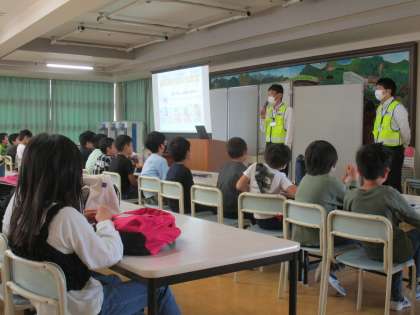 5月13日(土)3年生の親子活動、自転車安全教室がありました。市役所の方から、自転車の乗り方について講義を受けた後、校区内で自転車の実地をしました。子供たちにとって公道で自転車に乗るのは、とてもドキドキしたと思いますが、安全に気を付け乗車していました。