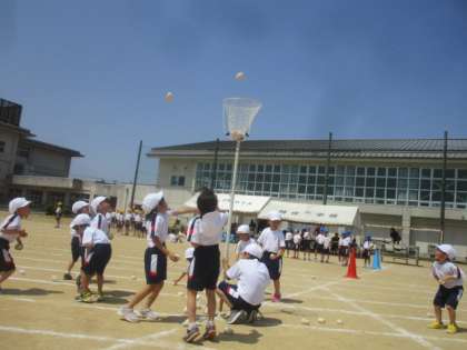 1・2年生のダンシング玉入れでは練習の時よりも多く玉を入れることができました。
