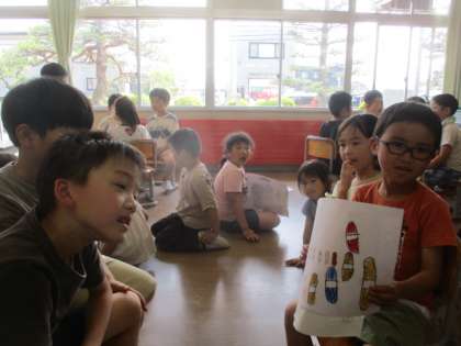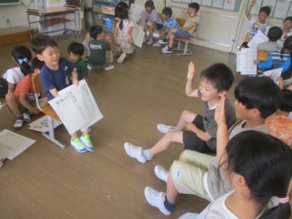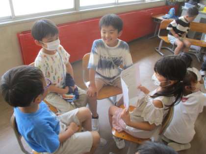 2年生に向けて、学校クイズをしました。 答えを当ててもらって、嬉しそうです。