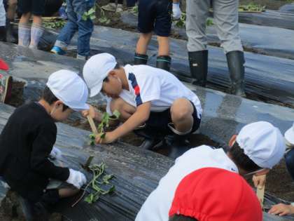 さつまいもの苗を植えました。 てきぱきとたくさんの苗を植えることができました。