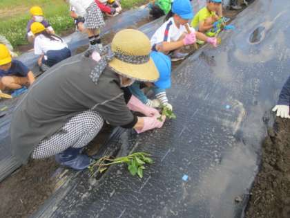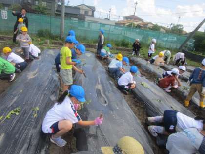 【1年生】サツマイモの苗植え2 公開日 2023/05/24 更新日 2023/05/24 1年生 苗植えの様子の続きです。 1年生は2年生や老人クラブの方の話を聞きながら一生懸命植えました。 秋の収穫が楽しみです。