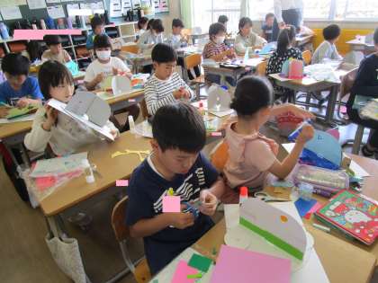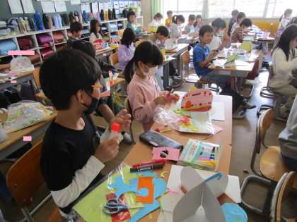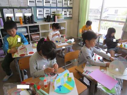 【3年生】くるくるランドをつくっています 公開日 2023/05/24 更新日 2023/05/24 3年生 今日の図工の時間は、くるくるランドをつくりました。春・夏・秋・冬や自分の好きなスポーツ、デザート等、様々な世界をつくり出す子供たち。とても楽しく時間が過ぎていきました。