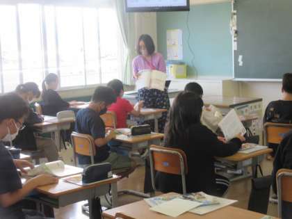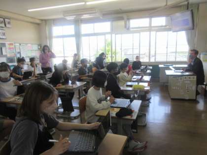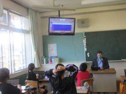 ALTの先生とクロムブックを活用して、リスニングの練習をしました。