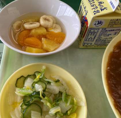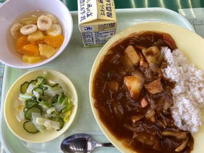 5月25日(木) 今日の給食 公開日 2023/05/25 更新日 2023/05/25 お知らせ・お願い 今日の献立は、ハヤシライス(麦ごはん)白菜サラダ、フルーツミックス、牛乳です。 ハヤシライスは、ごろっと大きなじゃがいもやしめじ、ベーコンなど具がたっぷりでした。麦ごはんのプチッとした食感もあり、とてもいおいしく、あっという間に食べ終わりました。フルーツミックスは甘くて冷たくて、子供たちにも大人気です。今日もおいしくいただきました!