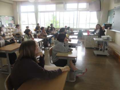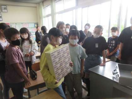 活動の様子です。1億円を実際に持って重さを体験しました。