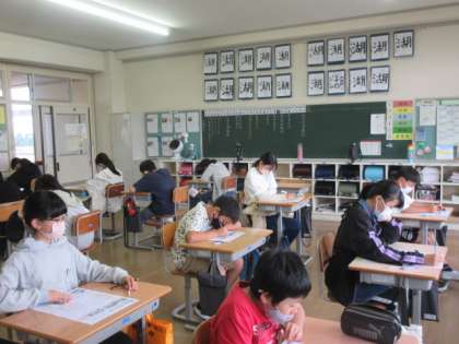 社会科「震災復興の願いを実現する政治」のテストを行いました。東日本大震災の事例を元にどのように復興したのかを学習し確認しました。