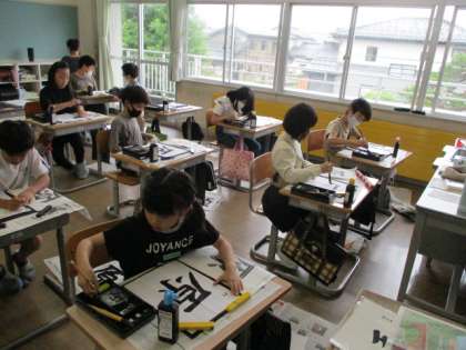 書写の時間では、「原」を字のバランスに気を付けながら書いています。今日は、筆を立てて書くところ、しっかりと押さえながら書くところを特に意識して取り組みました。集中して書くと、文字にも気持ちが表れますね!